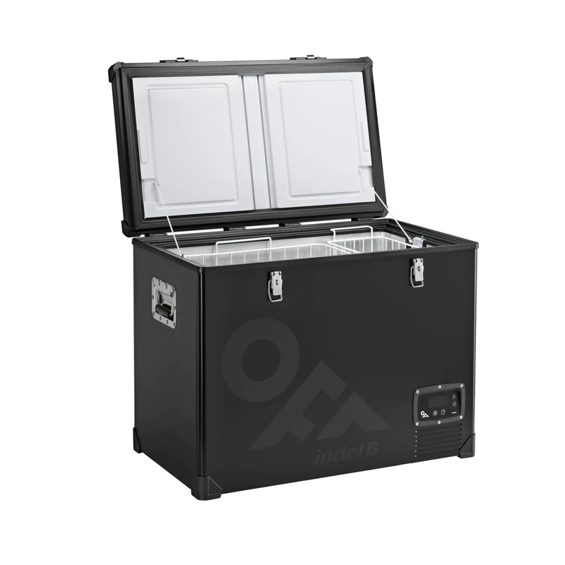 Вместительный переносной компрессорный холодильник TB 100 OFF от компании Indel B поставляется в чёрном цвете и имеет полезный объём 97 литров и питание 12/24 Вольта.