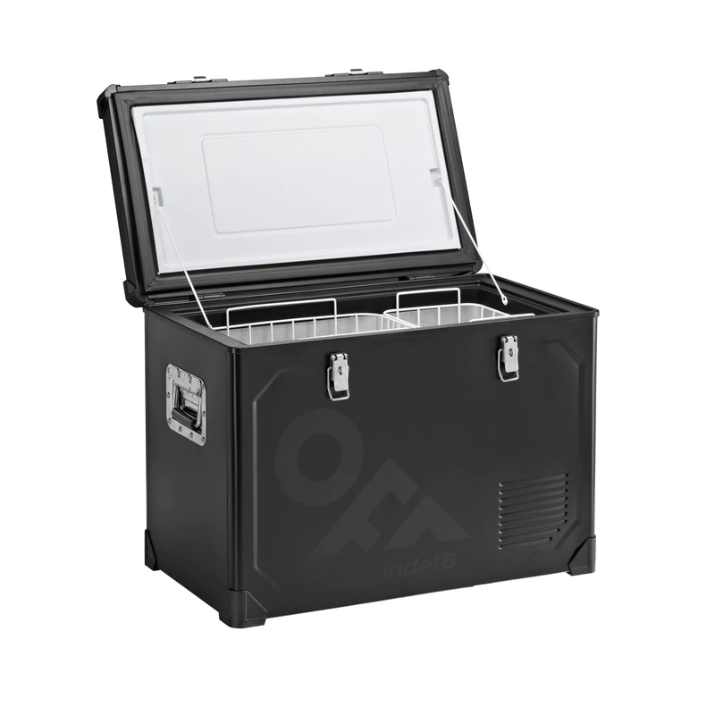 Переносной компрессорный холодильник TB 46 OFF от компании Indel B поставляется в чёрном цвете и имеет полезный объём 46 литров и питание 12/24 Вольта. Способен как охлаждать, так и замораживать продукты в диапазоне +10…-18 °C.