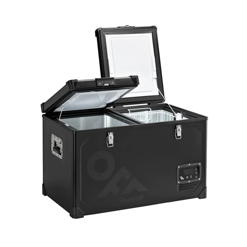 Переносной двухкамерный компрессорный холодильник TB 65 DD OFF от компании Indel B поставляется в чёрном цвете и имеет общий полезный объём 65 литров и питание 12/24 Вольта.
