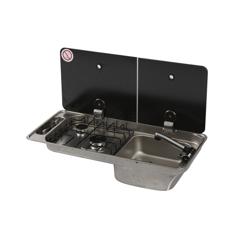 Комбинация встраиваемой 2-х конфорочной газовой плиты с раковиной, располагающейся с завода справа от конфорок. Can FL 1401 изготовлена из нержавеющей стали и оснащена двумя раздельными стеклянными крышками для плиты и раковины. Крышки с петлями можно перевесить на противоположную сторону, что позволит получить исполнение плиты с раковиной, которая будет располагаться уже слева от конфорок. В этом основное преимущество и универсальность плиты.