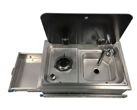 Camper-Marine GR-C022 Комбинированная выдвижная кухня с газовой плитой, раковиной и разделочным столом, нержавеющая сталь.