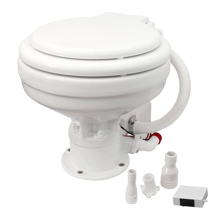 Электрический туалет TMC имеет открытое нижнее основание и оснащён мацератором 12 Вольт и может быть использован в автодомах, а также на катерах и яхтах.