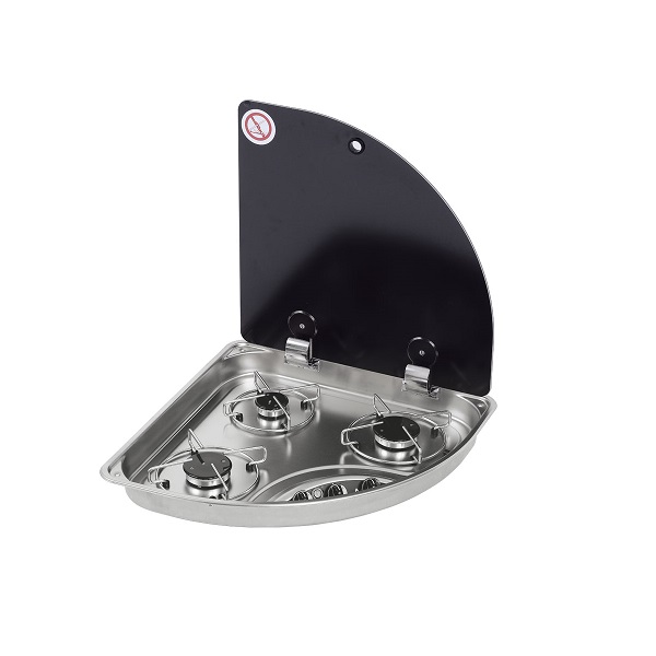 Итальянская трёхконфорочная газовая плита Can FC 1343 имеет форму треугольника, оснащена стеклянной крышкой и предназначена для встроенной установки. Решение для автодома, микроавтобуса, катера или яхты, а также для использования на даче.