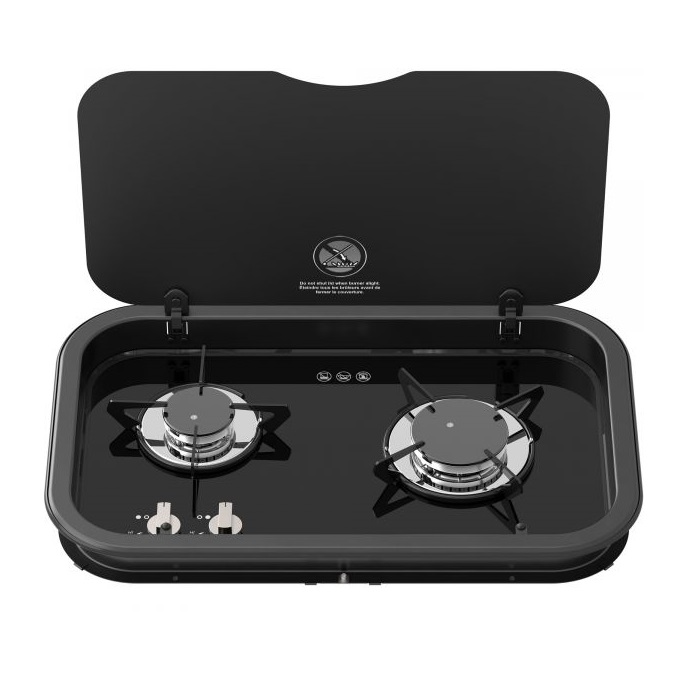 Варочная панель Topline 165 от компании Thetford имеет две газовые конфорки и крышку из термостойкого чёрного стекла. Подойдёт для установки на кухню автодома или камбуз катера. Наличие крышки увеличивает рабочую поверхность на столе, если её закрыть, когда плита не используется. Панель предназначена для скрытого монтажа в столешницу.