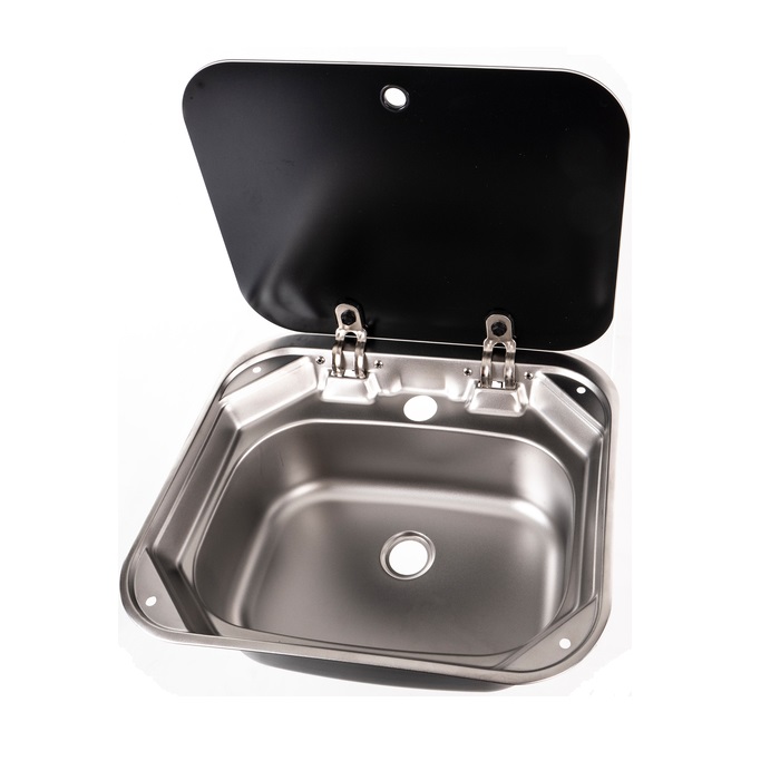 Раковина SNG 4237 оснащена стеклянной крышкой чёрного цвета и подойдёт для установки на кухню автодома, а также впишется в интерьер камбуза на вашем катере или яхте.