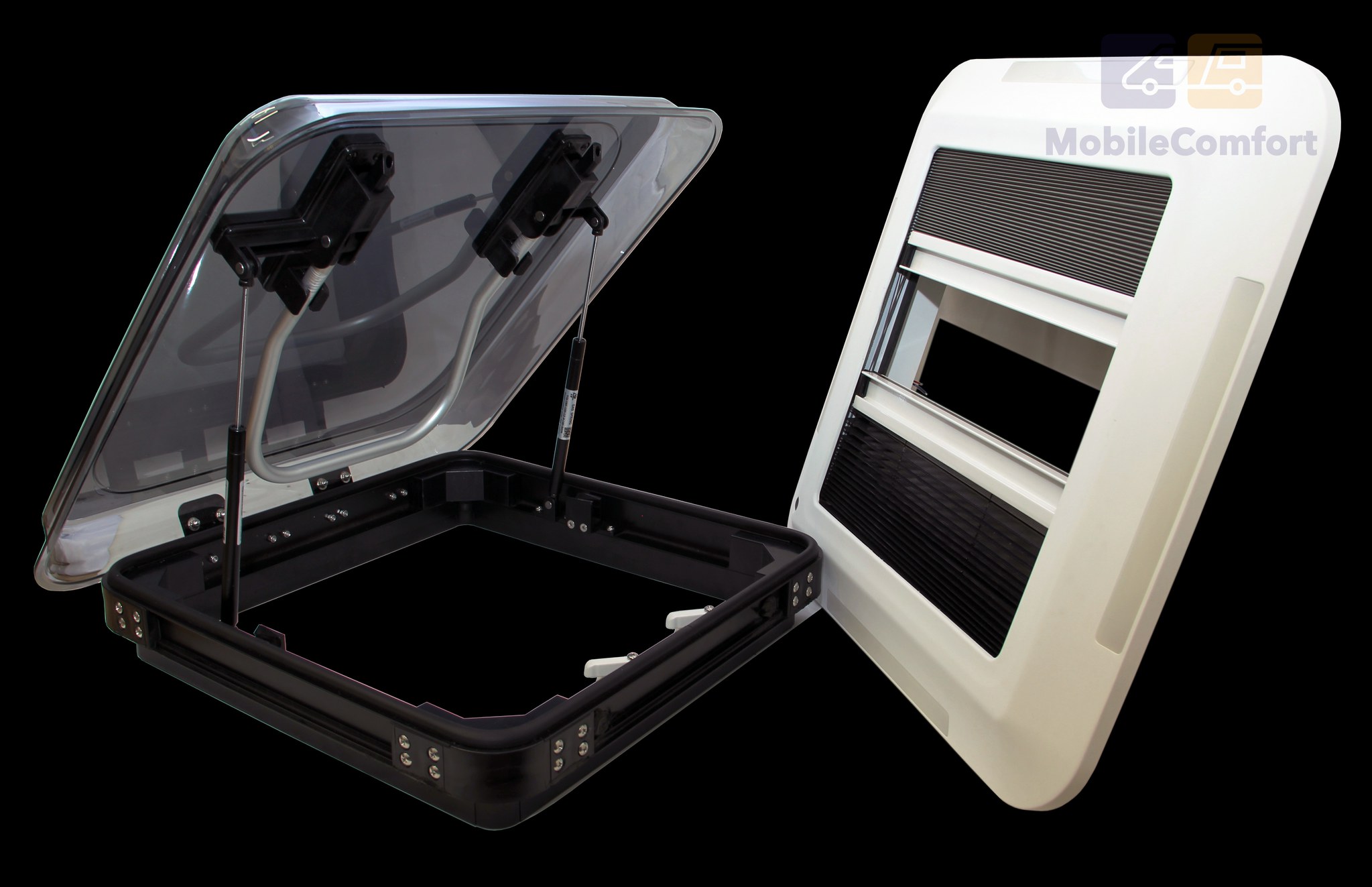 Линейка потолочных люков MOBILECOMFORT отличается высоким качеством и долговечностью. Благодаря внешнему аэродинамическому профилю верхней крышки, не требуется установка дополнительного спойлера. Запатентованное резиновое уплотнение на внутренней раме люка гарантирует водонепроницаемость. Люк изготовлен из высококачественных материалов. Алюминиевая усиленная рама, купол люка двойное акриловое стекло с тонировкой устойчивое к ультрафиолетовому излучению. Поставляется с солнцезащитной плиссированной шторкой и москитной сеткой. Двух типоразмеров 400х400 и 700х500 мм