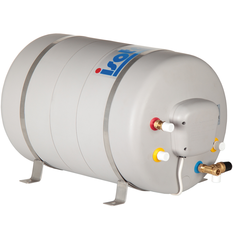 Бойлер Isotemp Spa объёмом 40 литров - это удобное решение для подогрева воды в автодоме, кемпере, караване, а также на катере или яхте. Оснащён нагревательным элементом на 750 Вт/220 Вольт, а также встроенным змеевиком, позволяющим нагревать находящуюся в бойлере воду от горячего антифриза, посредством интеграции бойлера в контур системы охлаждения двигателя или жидкостного подогревателя.